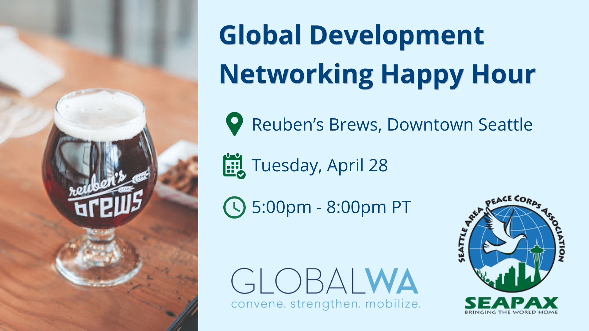 - April 28 Global Development Networking Happy Hour